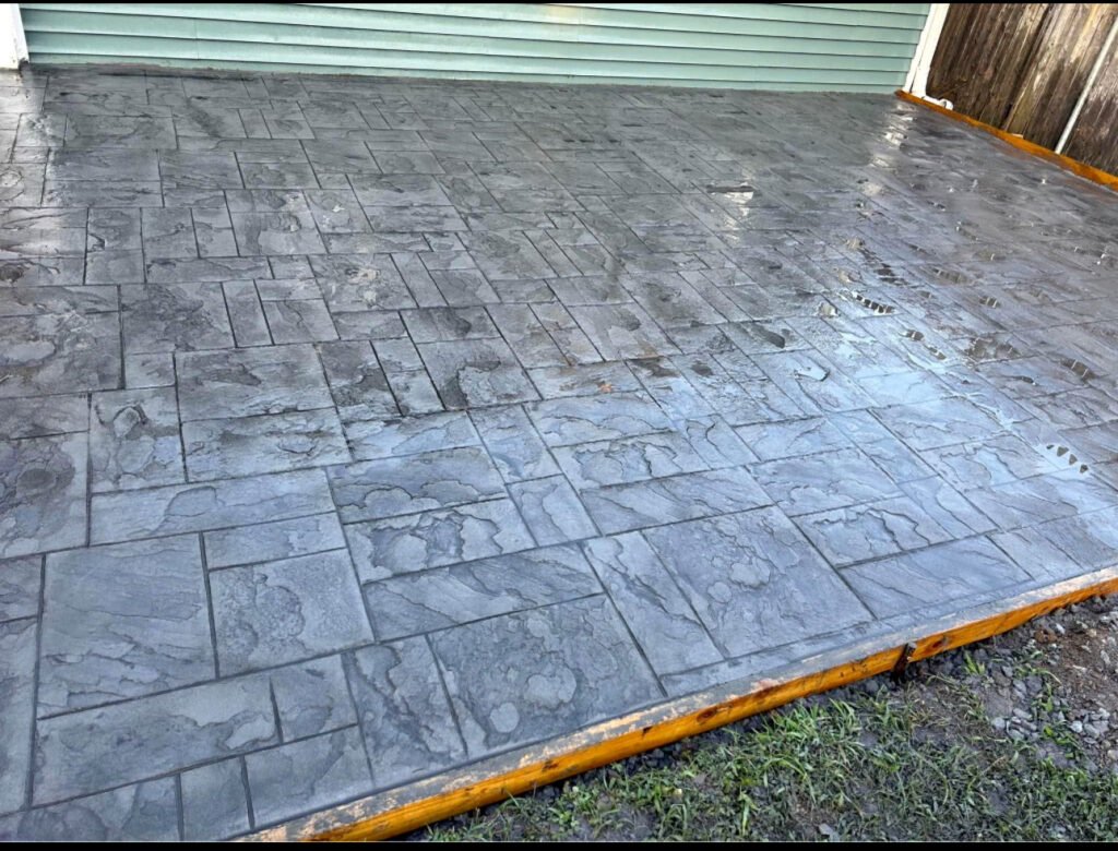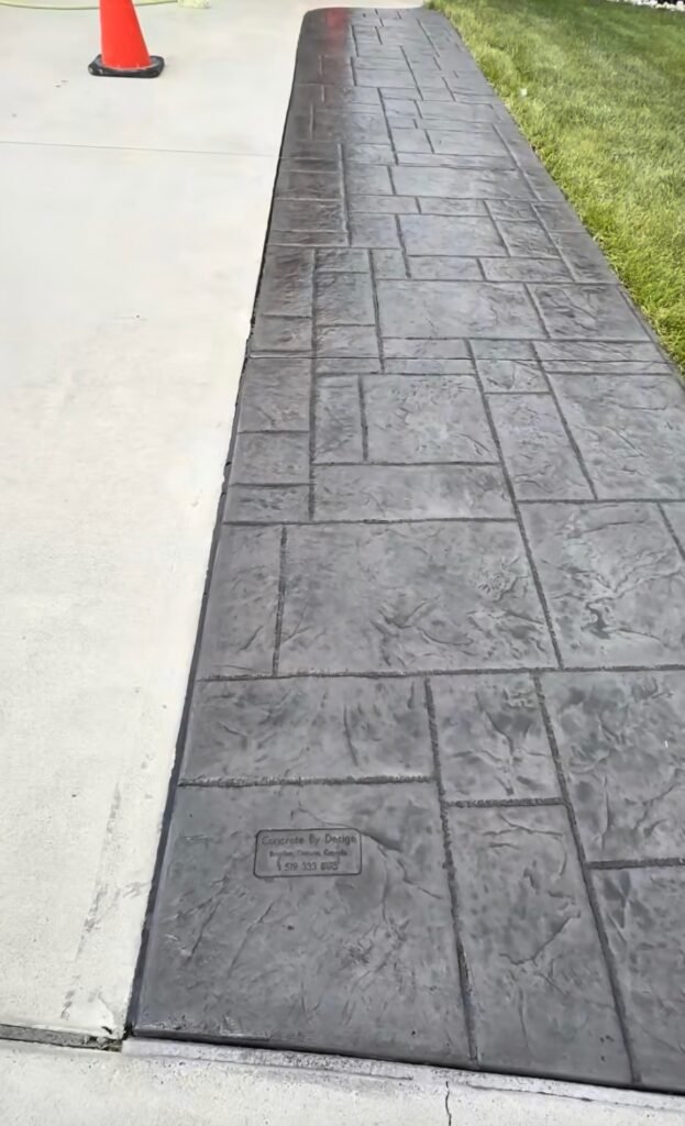 Stamped concrete driveway addition